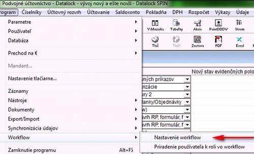 V spine je potrebné nadefinovať nastavenie cez voľbu Program – Workflow - Nastavenie workflow, Riadok pošta – schválenie RSD pošty.